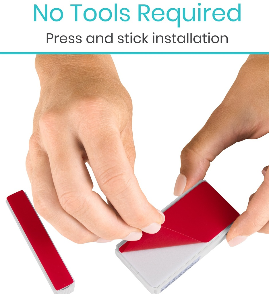 Easily attach to any door frame or window in minutes. The wireless transmitter and pairing device are backed with a strong self-adhesive for a simple, press and stick installation. No tools, drilling or outlets required. Wirelessly connecting to a portable receiver, the alarm transmitter base and pairing device are compact, measuring 2” x 3”.