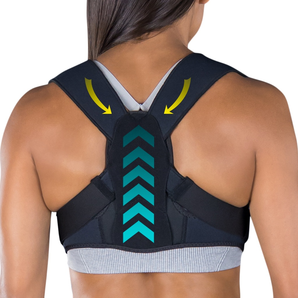 Our posture support strap reduces strain due to computer posture, rounded shoulders and slouching. Supporting proper alignment, the posture corrector relieves tension, pressure and soreness in the neck, shoulders and back.