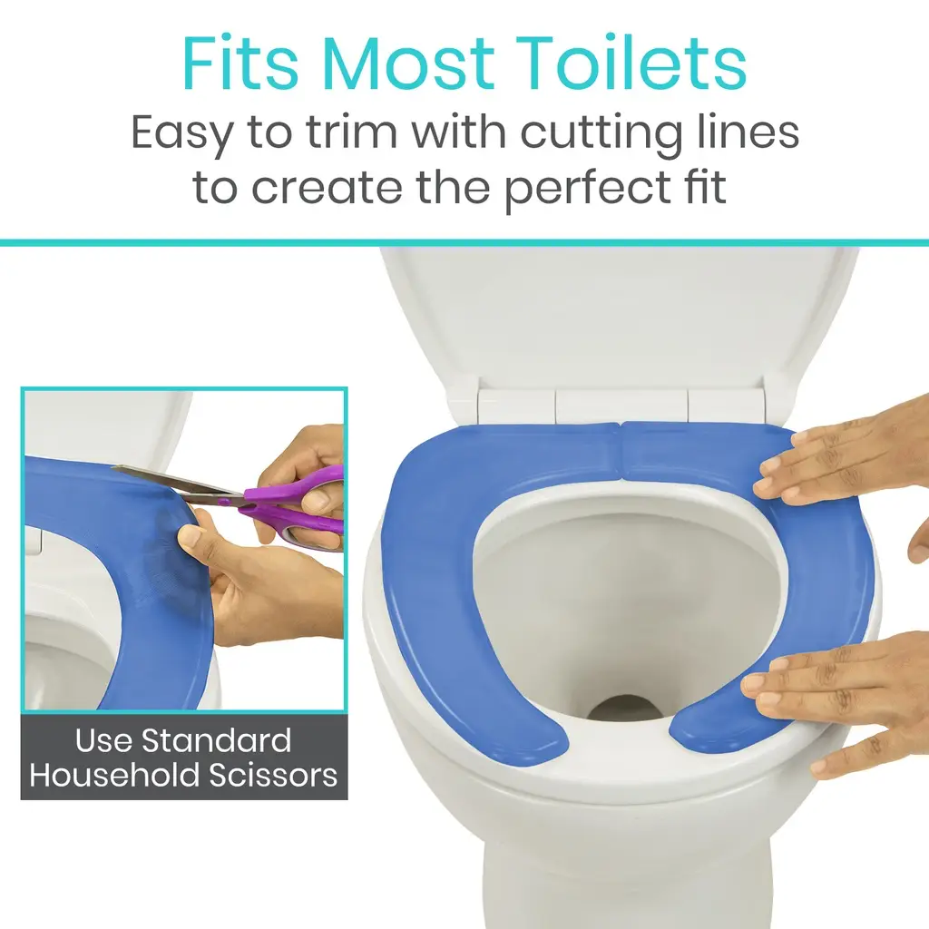 Our Vive Gel Toilet Seat Cushion is designed to fit standard and elongated toilets. Each two-piece cushion features cutting lines to create the perfect fit on top of your existing toilet seat or bedside commode and may be trimmed with standard household scissors.