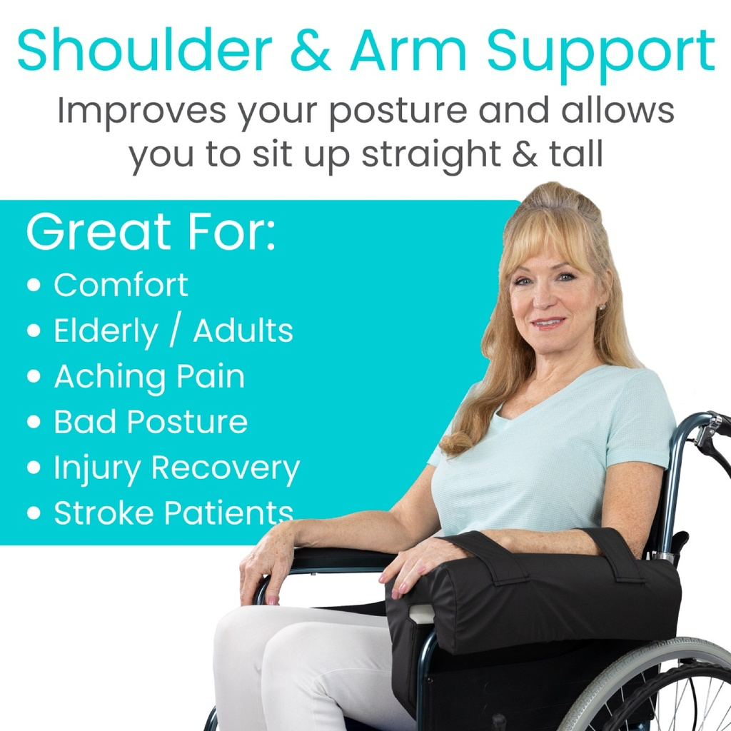 Enhance your wheelchair experience with the Vive Lateral Wheelchair Armrest, designed to improve arm and elbow support significantly. This padded armrest, available in two sizes for optimal fit, attaches effortlessly to your wheelchair’s metal frame, offering both comfort and ease of use. Its hassle-free installation and waterproof, easy-to-clean design make maintenance a breeze, ensuring your armrest remains pristine and supportive over time. Constructed for durability and universal compatibility, it comes equipped with adjustable straps for a secure and natural fit, allowing immediate enjoyment without needing a complex setup. Elevate your seated comfort with this essential wheelchair accessory.