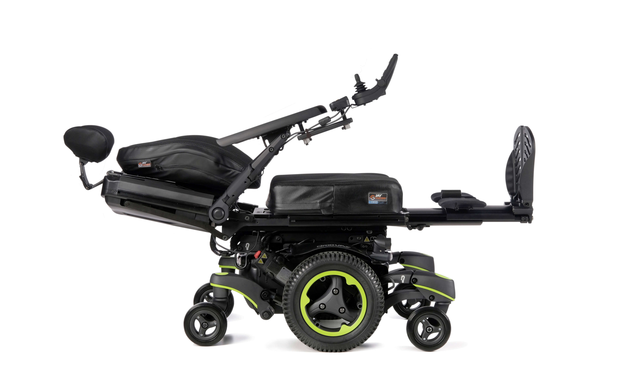 As a true mid-wheel drive wheelchair with robust suspension, the QUICKIE Q700-UP M standing power wheelchair offers a fantastic balance of indoor maneuverability and outdoor performance, allowing you to make tighter turns or drive over uneven ground with greater confidence. Featuring a compact 19.8″ turning radius, reliable 4-pole motors, and independent suspension on all six wheels, the Q700-UP M combines function and luxury for a truly unique driving experience.