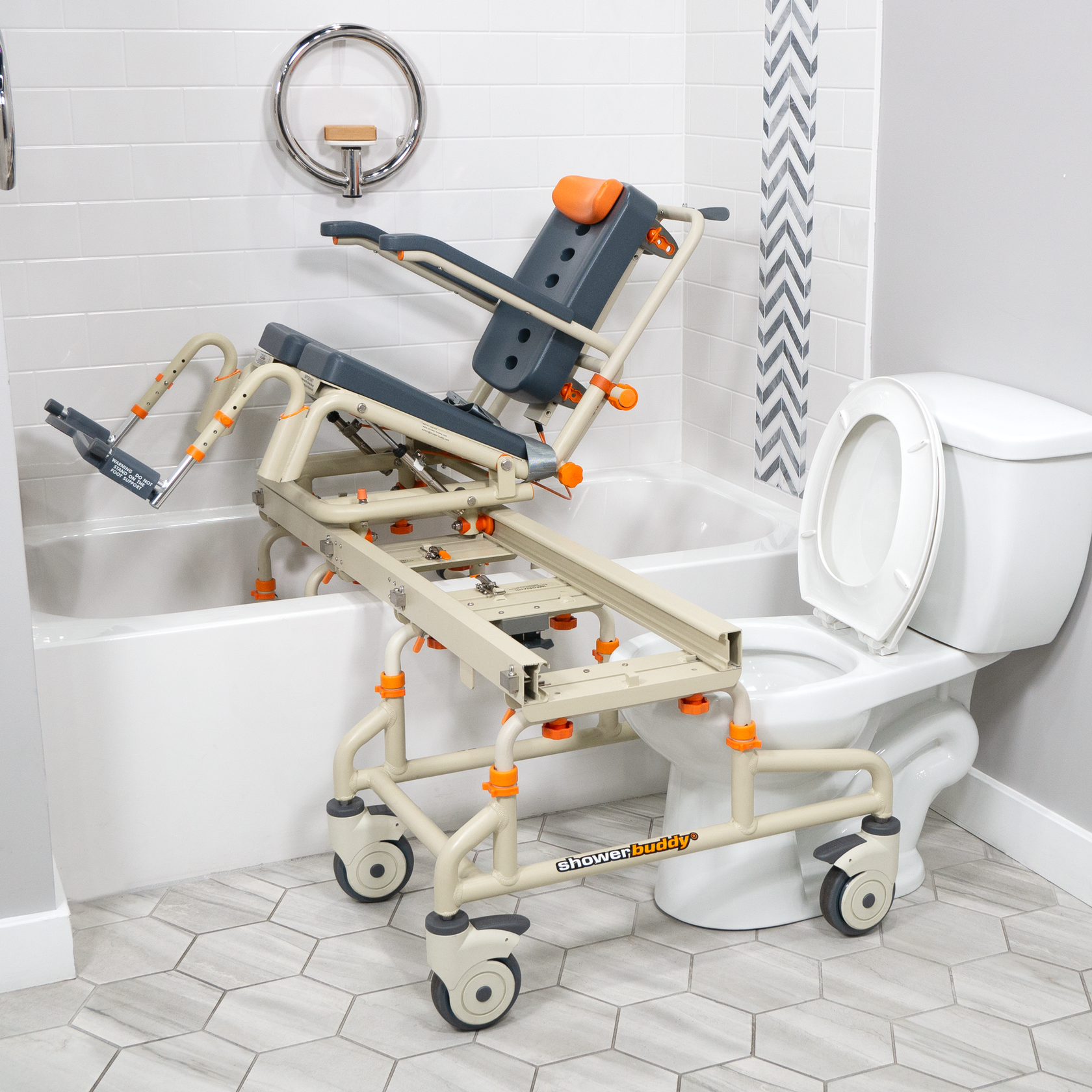 Showerbuddy Pediatric Converter Kit P1 allows the chair to be sized to suit a smaller user yet retain the ability to grow with the user saving on expensive chair upgrade costs over time. With a padded backrest cushion (280mm or 11” wide) that adjusts for seat depth (290mm or 11.5” to 405mm or 16”) and limited recline, reduced width between armrests, (300mm or 11.8”) lower armrests (190mm or 7.5”) smaller commode opening cushion (150mm or 6”) and adjustable padded neck pillow, the Pediatric Converter offers a solution for smaller users needing to transfer. NOTE: Users requiring this accessory may also benefit from the Showerbuddy accessory SBLT Laterals that can be used on Pediatric Converters P1 and P2. Please refer SBLT accessory.