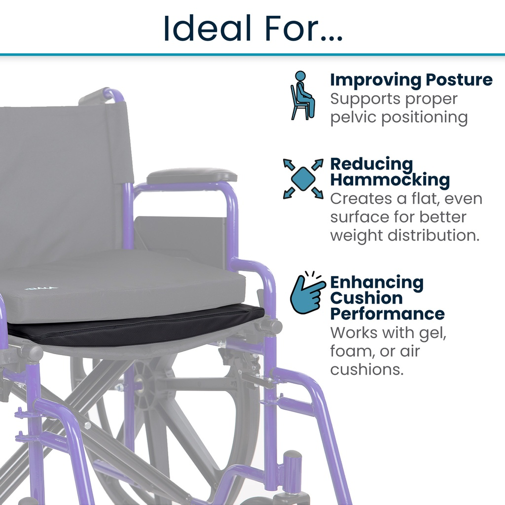 • Uses: A foldable solid seat insert for better support and spinal alignment in wheelchairs.