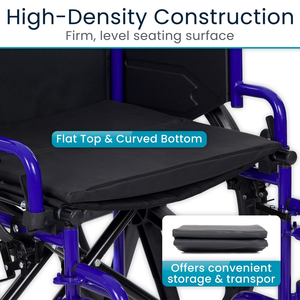 The Vive Foldable Solid Seat Insert offers a stable, supportive solution for enhancing wheelchair comfort and posture. Made with high-density foam, it creates a firm, level base that promotes even weight distribution and helps reduce pressure points during long periods of sitting. Available in three width options, the insert fits most standard and bariatric wheelchairs, ensuring a secure and tailored fit. Its foldable design allows for easy portability and compact storage, making it a convenient option for travel, home use, or care facilities. The water-resistant cover protects against spills and everyday messes, while a hidden zipper makes it easy to remove and clean.